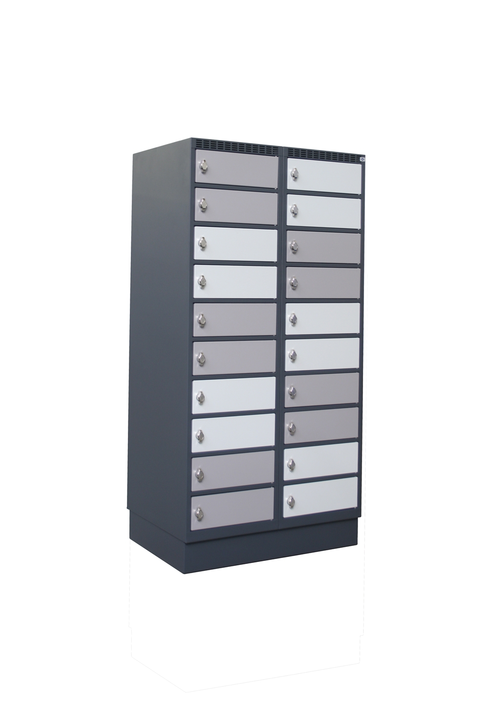 20 rums opladnings pladeskab, incl. sokkel, til bærbare PC, tablet eller mobil - sikker opbevaring